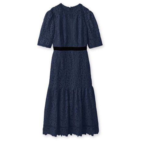 フラワーモチーフを繰り返し、はしごレースをあしらったCELFORD定番のレースワンピース。