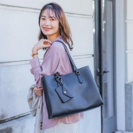 ハンドルは肩に掛けやすい長さで、デイリーの通勤や打ち合わせスタイルにもマッチ。
