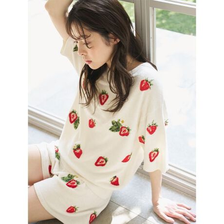 <b>ジューシーないちごを散りばめた半袖プルオーバー</b>
