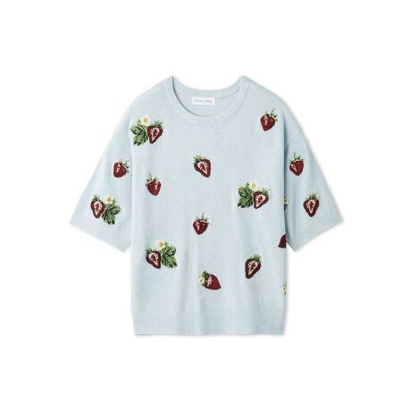 葉っぱやお花まで細かく描かれた、ジューシーないちごのジャガード刺繍を散りばめた半袖プルオーバーです。