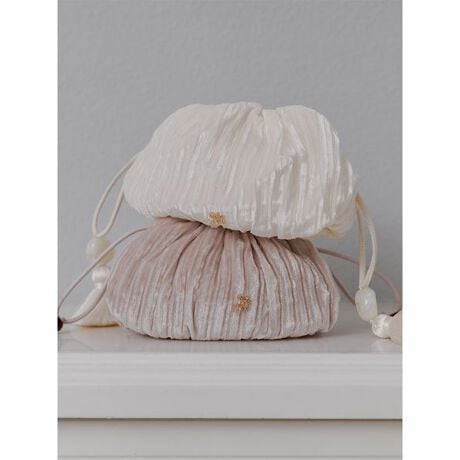 上品な光沢感のあるベロア生地を使用した、プリーツ加工がキュートな巾着ポーチです。