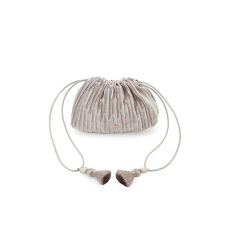 <b>揺れるタッセルが可愛いベロアプリーツの巾着ポーチ</b>