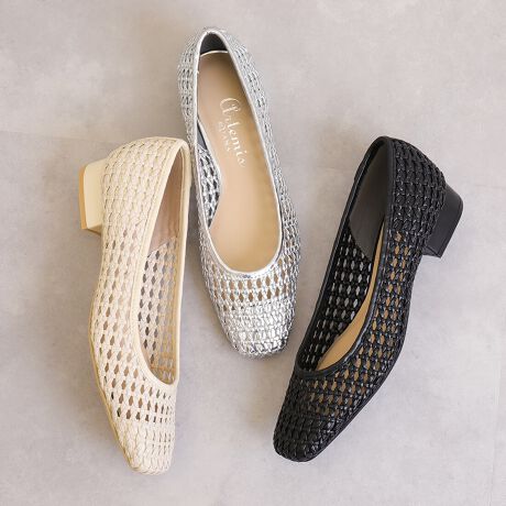 ・メッシュ編みデザインが涼しげなパンプス。