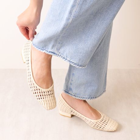 ・メッシュ編みデザインが涼しげなパンプス。