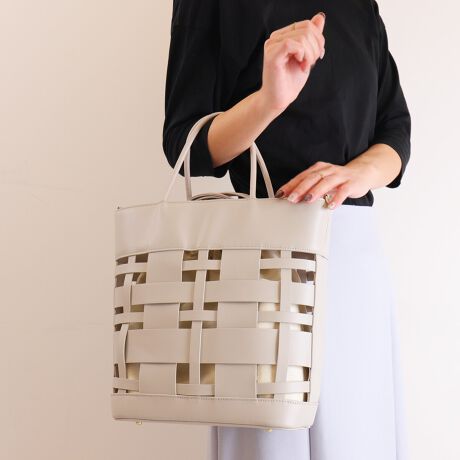 ・職人の手作業による編み込みデザインが春夏らしく上品なトートバッグ。