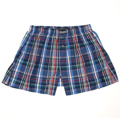 [型番:RM4-D101]コットン100%の平織生地のトランクスです。なめらかで光沢のある素材感が特長で、カーボンピーチ加工により柔らかな風合いを加えています。ブルーを基調としたクラシックなタータンチェック柄。フロントセンターに縫い付けたラベルと、左裾に入れたブランドアイコンのポロプレイヤー刺繍がポイントで、ブランドロゴを刻印したボタンもさり気ないこだわりです。前開き仕様。*3Lの大きなサイズ(RM4-D101K)も展開しています。