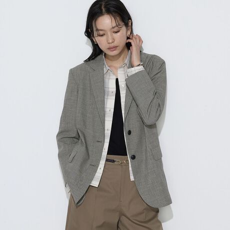 ボックスシルエットに、肩パットもあえて入れず少しラフな印象です。