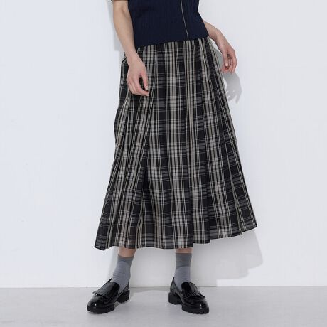 トラディショナル感のある太めのタックチェックスカートです。