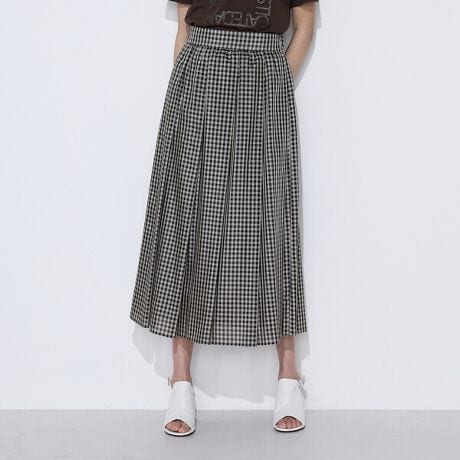 トラディショナル感のある太めのタックチェックスカートです。