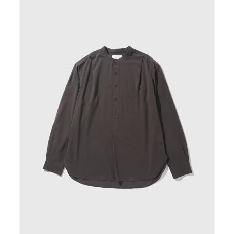 ・プルオーバー仕様で、前身側の肩部分にタックを取ってウエストインしたときに膨らみの出るシルエットにしています。アウトしたときはドレープを楽しめるのもうれしいポイント