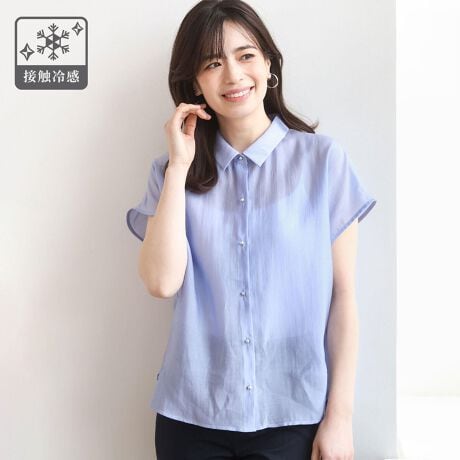 軽く柔らかな肌触りの素材を使用。程よい透け感があり、見た目も軽やかで涼やかな印象です。さらりとした着心地で、嬉しい接触冷感機能付き。暑い季節にも快適に着用いただけます。