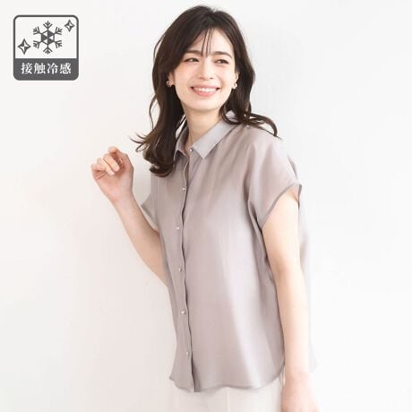 軽く柔らかな肌触りの素材を使用。程よい透け感があり、見た目も軽やかで涼やかな印象です。さらりとした着心地で、嬉しい接触冷感機能付き。暑い季節にも快適に着用いただけます。