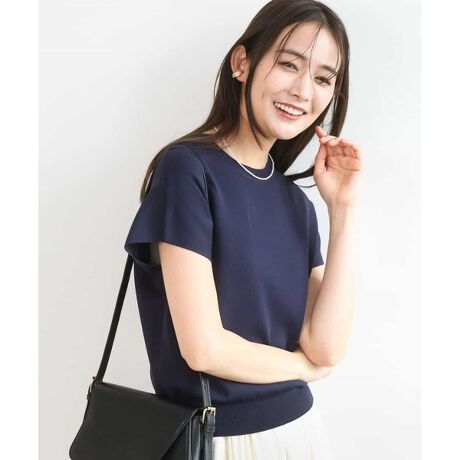 二の腕をすっきりと見せてくれるフレンチスリーブで一枚着も安心なニット。体のラインを拾いにくいコンパクトなサイズ感は、きれいめTシャツ感覚で幅広くコーディネートを楽しめます。