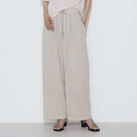 素材による清涼感とリラックス感のあるウエストゴムとドロスト仕様で着用感が程よく、夏に向けてぴったりのイージーパンツです。