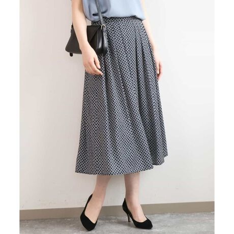 同素材のブラウスと合わせれば、ワンピース見えする華やかなセットアップスタイルに。 シンプルなトップスと合わせても、柄が主役の上品な着こなしが完成します。