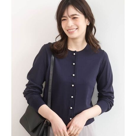 パール釦がさりげないアクセントになったコンパクトカーディガン。上品な華やかさを添えてくれるデザインで、飽きのこないシンプルさも魅力です。 ワードローブに一枚あると重宝し、どんなアイテムとも好相性に決まります。