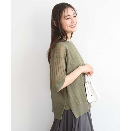これ一枚で旬なレイヤードスタイルが楽しめるシアーアンサンブル ■デザイン シアーニットがトレンド感のある半袖プルオーバーとタンクトップがセットになったアンサンブル。これ一枚でコーディネートに迷わずレイヤードを楽しめます。肘がしっかりと隠れる六分袖ながらも、程よくゆとりのあるシルエットは涼しげな印象に。 ■素材 ワイドリブの半袖プルオーバーは透け感あり、タンクトップは透け感を抑え、セットで安心して着こなせるラクさと、透け感のこなれさを両方兼ね備えたニットアイテムです。 ■コーディネート 着丈は腰が隠れる程度でそのままスカートやワイドパンツに合わせても重たくならずにバランスよく着こなせます。もちろん単品でも楽しめるので、タンクトップはインナーとして役立ったり、プルオーバーはキャミワンピースの上に重ねてレイヤードスタイルを楽しんだりと自由自在。 -------------------- 着用シーズン 春:◎ 夏:◎ 秋:△ 冬:× -------------------- 洗濯表示:手洗い可 透け感:プルオーバーあり、タンクトップはなし 裏地:なし 伸縮性:あり 生地の厚さ:やや薄手〜ふつう --------------------