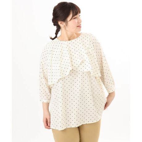 身頃に入ったフレアが印象的な、ドットプリントブラウス。