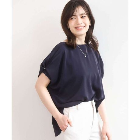 立体感のあるタックスリーブがポイントのデザインブラウス。肩から自然に落ちるドレープが女性らしい柔らかな印象を演出します。タック部分にはさりげなくパールをあしらい、上品な華やかさをプラス。ゆとりのあるシルエットで気になる腕まわりも自然にカバーし、一枚でサマになる着映えブラウスです。