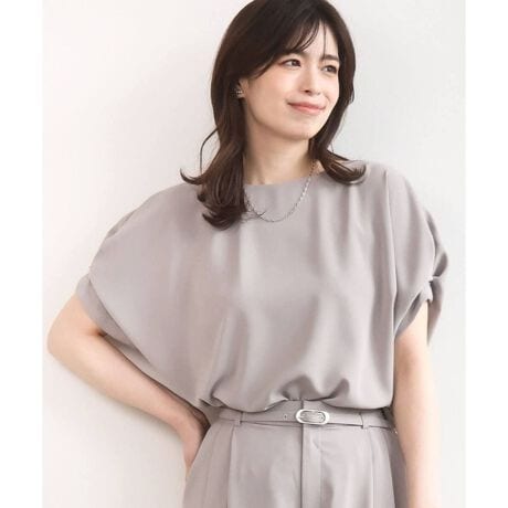 立体感のあるタックスリーブがポイントのデザインブラウス。肩から自然に落ちるドレープが女性らしい柔らかな印象を演出します。タック部分にはさりげなくパールをあしらい、上品な華やかさをプラス。ゆとりのあるシルエットで気になる腕まわりも自然にカバーし、一枚でサマになる着映えブラウスです。
