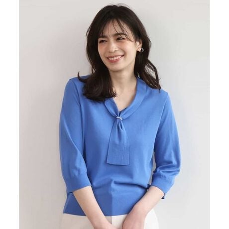 ボウタイデザイン六分袖ニット/接触冷感/洗える/WEB限定サイズあり
