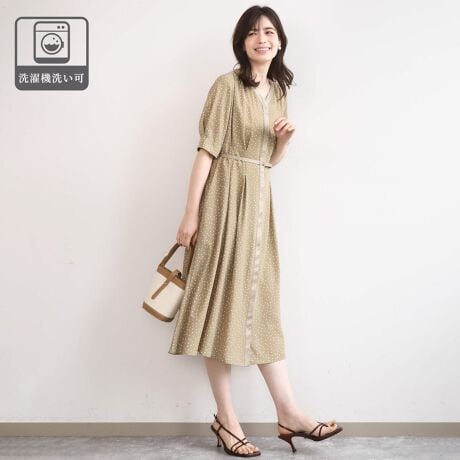 ドット柄ウエストタックワンピース/洗濯機で洗える/WEB限定サイズあり