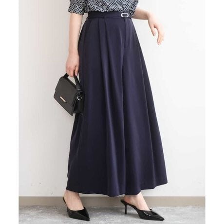 共地ベルトがアクセントになり、トップスをインした着こなしも自然にまとまります。デイリーからお仕事まで幅広いシーンに取り入れやすい一着です。同素材のブラウスと合わせたセットアップスタイルもおすすめ◎