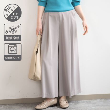 柔らかな落ち感のある合繊素材を使用。さらりとしたタッチで涼やかな着心地が魅力です。 マシーンウォッシャブル対応でお手入れも簡単。UVカット・接触冷感機能付きで、夏に嬉しい機能を備えた一枚です。
