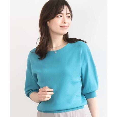 ハイゲージボートネック五分袖ニット/接触冷感/洗える/WEB限定サイズあり