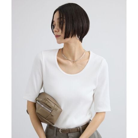 デコルテをヘルシーに見せる絶妙なUネックと、大人が着やすい袖丈設計が魅力です。