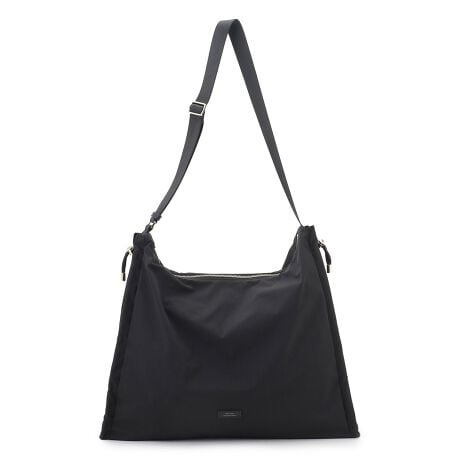両サイドにあしらわれたギャザーを調整することで、シルエットとサイズ感を自在に変えられるショルダーバッグです。荷物が少ない時は両サイドを絞って丸みのあるコロンとしたコンパクトなフォルムに、荷物が増えた時や旅行の際には伸ばして横幅49cmの大容量バッグとしてお使いいただけます。また、片側だけを絞ることで斜め掛けのナップサック風にもなるマルチウェイ仕様で、その日の気分やスタイルに合わせて楽しめます。撥水加工が施されているため雨の日でも安心で、デイリーからトラベルまで幅広いシーンで活躍します。カラーは、カジュアルなスタイリングと相性抜群のブラック(#005)、どんなコーディネートにもなじみの良いベージュ(#033)の2色展開です。