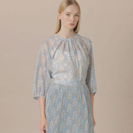 素材の特性を活かした分量感たっぷりのパフスリーブデザインで上品で華のある雰囲気に仕上げたブラウスです。シンプルなボトムスと合わせるだけでスタイリングが完成するアイテムです。同素材のスカート(品番:G5S04744)もご用意しております。