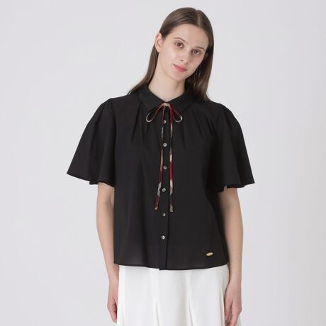 [型番:55M12781__]◆シアー感が上品な華やかブラウス【Design】フレアスリーブが華やかなデザインブラウスです。袖にほどよいフレアを入れることで風通しがよく、二の腕を自然にカバーし、スタイルアップ効果も期待できます。首元のリボンは取り外し可能。きちんと見せたいオンシーンから、シンプルに着こなしたいオフの日まで、幅広く活躍します。※展開店舗については、予告なく変更になる場合がございます。