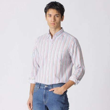 オリジナルのマルチストライプ素材を使用したシャツ。