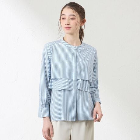 ストライプの地の目やフレアの分量感など、理想のバランスを追求した大人のフレアブラウスです。