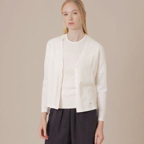16ゲージで繊細に編みたてたケーブル柄がポイントのカーディガンです。ジャケットにも合わせて着用出来るシャープな衿元で、トップスやワンピースなどの羽織としても汎用性の高いアイテムです。同素材のプルオーバー(品番:G5N16715)とアンサンブルで着用いただけます。