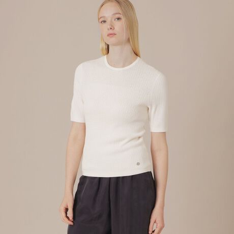 優しい色合いを生かしたミニケーブル柄のニットプルオーバーです。16ゲージで繊細に編みたて、首に添った衿元は1枚でもジャケットなどのインナーとしてもエレガントな装いになります。同素材のカーディガン(品番:G5N15715)とアンサンブルで着用いただけます。