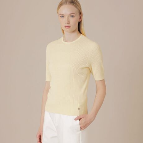 紡績した極細の強撚糸を更に追撚した糸を使用し、シャリ感が出しながら綺麗な編み目に仕上げた素材です。