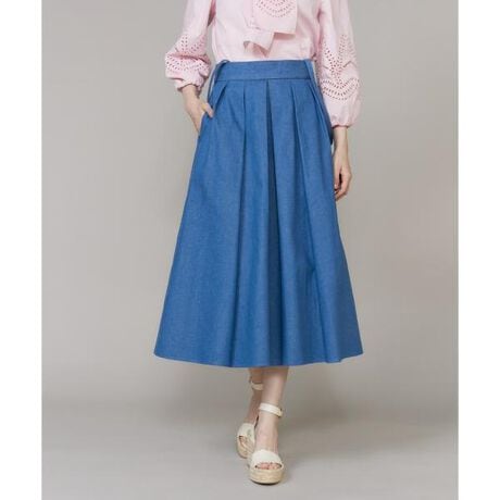 ■デザイン他にはない鮮やかなブルーが目を惹くタックスカート。日本有数のデニムの産地として知られる倉敷市児島の生地を使用し、ほどよいカジュアル感の中に上品さと存在感を兼ね備えた特別な一枚に仕上げました。立体感のあるタックが美しいシルエットを描き、動くたびに表情豊かな印象を演出します。取り外し可能なサスペンダー付きで、長さ調節も可能。スタイリングに合わせてアレンジでき、着こなしの幅が広がります。ニットや花柄刺繍ブラウスと合わせた、女性らしさのあるコーディネートもおすすめです。■素材ショーワデニム世界中のジーンズファンを魅了する倉敷市児島の地でショーワは唯一、染め、織りから仕上加工までを一貫して行っているデニム製造メーカーです。糸染めは特殊な反応染料を使用しており、デニムの雰囲気を持ちながら色落ちしにくい優れた生地。特殊なブルーが特徴的で他にはないカラーです。・ポケットあり・サスペンダー取り外し可・左サイドファスナーあり・ウエスト後ろ部分ゴム仕様同素材のジャケット品番:5162141525※WEB限定・POPUP限定カラーになります。■サンプル撮影商品画像の商品はサンプルです。実際の商品とはサイズや色味、素材、デザイン等の仕様が若干変更になる場合がございます。■カラーについては、可能な限り実際の商品に近いカラーで撮影をおこなっておりますが、照明の関係により実際の製品とは色味が違って見える場合があります。またパソコン・スマートフォンなどの環境により、若干製品と画像のカラーが異なる場合もございます。現物と画像のカラー差異については返品理由となりませんので、予めご了承ください。■サイズ表記はあくまで目安となります。