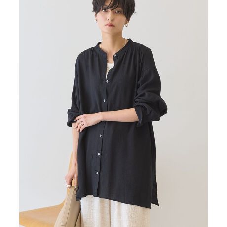 軽やかに揺れる楊柳素材の上品シャツ表面に凹凸のある楊柳素材が、さらりとした肌触りと涼やかな印象を与えてくれる一枚です。自然なシワ感が特徴で、アイロンいらずでもこなれた雰囲気を楽しめます。首元をすっきり見せてくれるバンドカラーは、きちんと感と抜け感を両立し、大人カジュアルな着こなしにぴったりです。ゆとりのあるシルエットで体のラインを拾いにくく、リラックスした着心地です。前を閉じて一枚で着るのはもちろん、タンクトップやカットソーの上から羽織りとしても活躍します。デニムやワイドパンツ、スカートとも合わせやすく、通勤から休日まで幅広いシーンで使える万能シャツです。透け感[ややあり]