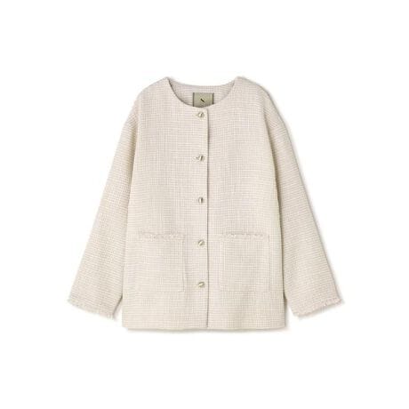 トレンド感のあるオーバーサイズのツイードジャケット。羽織るだけでこなれた印象を演出し、キレイめにもカジュアルスタイルにも活躍します。インナー次第でロングシーズン着用でき、着回し力も抜群。デニム合わせも上品に決まる一着です。<素材>表情豊かなツイード素材を使用。上品な風合いでほどよい厚みがあり、羽織りとして快適に着られる素材です。<詳細>仕様・前ボタン裏地・あり透け感・なし / 光沢・なし / 伸縮性・なし生地の厚さ・普通※モデルの着用画像の場合、光の当たり具合により、実際の色味と異なって見えることがございます。色味は、商品単体の画像をご参照ください。