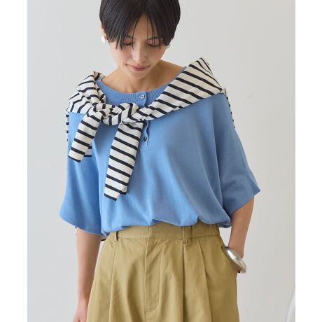 前後で着回せる涼感ポンチョニット前後2WAYで着られるデザインが魅力のポンチョニットです。クルーネックとボタンデザインの両面を楽しめるため、その日の気分やコーディネートに合わせて印象を変えられます。ゆったりとしたポンチョシルエットが体のラインを自然にカバーし、抜け感のある大人カジュアルを演出します。接触冷感素材を使用しているので、肌に触れた瞬間ひんやりと心地よく、暑い季節も快適に過ごせます。パンツにもスカートにも合わせやすく、通勤やお出かけなど幅広いシーンで活躍します。着回し力と涼しさを兼ね備えた、夏にうれしい万能ニットです。