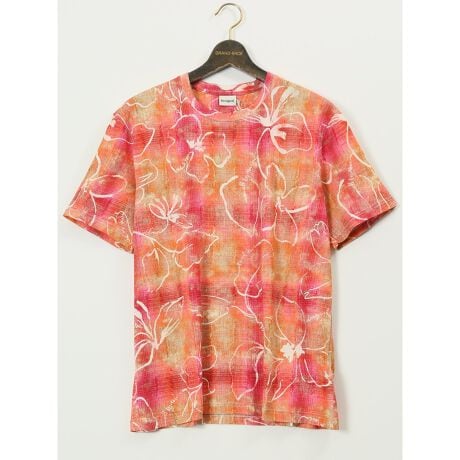 存在感たっぷりに仕上げた、クルーネックの半袖Tシャツです。チェック柄とハイビスカス風の総柄プリントがポイント。デシグアル/Desigual らしい遊び心のあるデザインはスタイリングの主役にぴったりです。ホワイトデニムやハーフパンツとの相性抜群で、こなれた大人カジュアルを演出します。