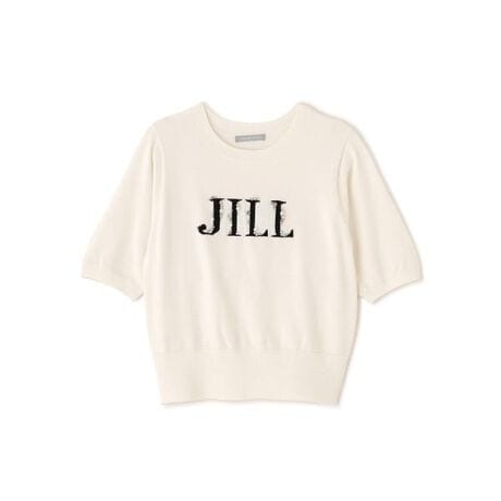 半袖ロゴジャカードビジューニット