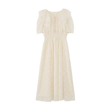 異なるレースを組み合わせた華やかなワンピース。揺れるフリルとフィット&フレアシルエットで、フェミニンかつスタイルアップを叶えます。一枚で着映えし、デートやお出かけにぴったりの主役アイテムです。※撮影時照明の関係により、色味が違って見える場合がございます。またパソコン・スマートフォンなどの環境により、若干製品と画像のカラーが異なる場合もございます。予めご了承ください。商品の色味は、商品単品画像をご参照下さい。※商品画像はサンプルのため、色味やサイズ等の仕様に変更がある場合がございますので、予めご了承ください。