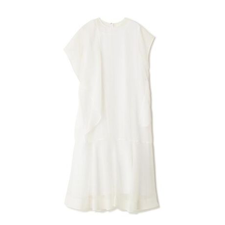 ラッフルパーツが特徴的なソフトオーガンジーラッフルドレス