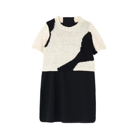 アブストラクトな柄の入ったショート丈ニットと合繊インナーのセット商品です。