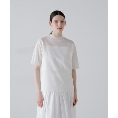 上品な光沢を持つ糸で編んだシアー半袖ニット。