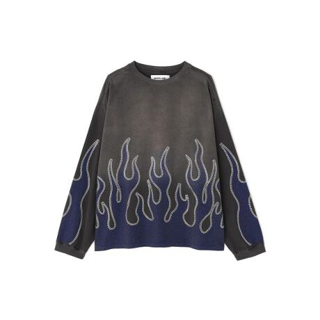 フロントから袖にかけて大胆に落とし込まれたファイヤーグラフィックが目を惹くロングスリーブTシャツ。