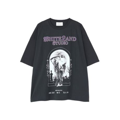フロントに〈WHITELAND STUDIO〉のロゴと、神秘的な“GRIM REAPER(死神)”をモチーフにしたアートワークを施したグラフィックTシャツ。